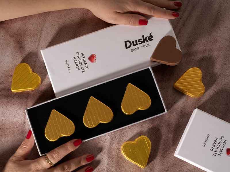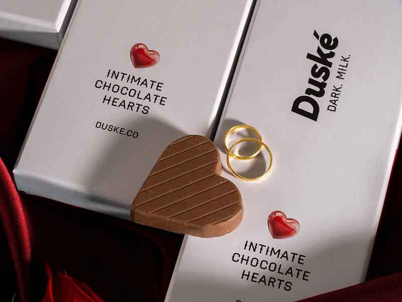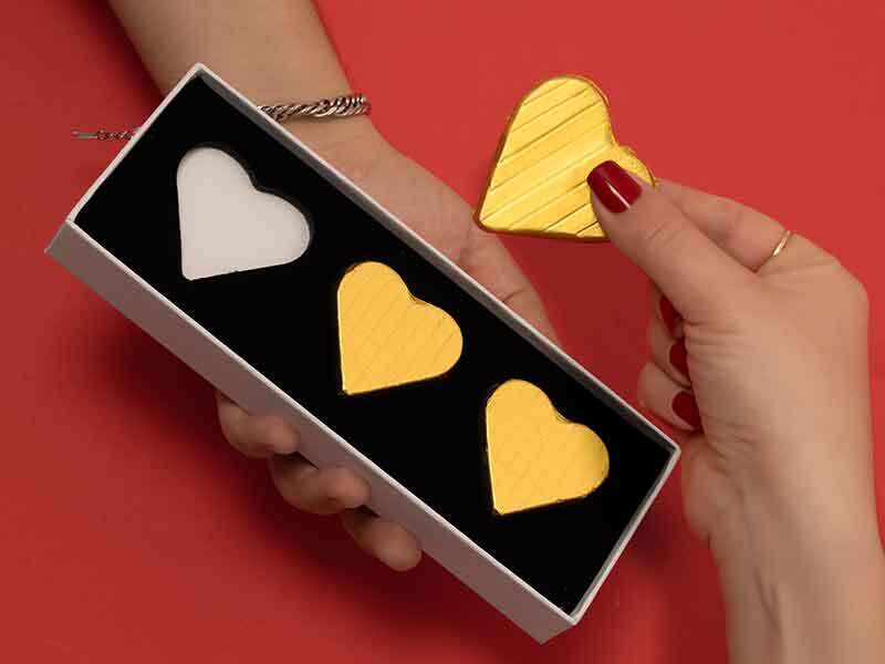 تقدّم شوكولاتة دُسكي للحظات الخاصة مجموعة من ثلاث قطع على شكل قلب: