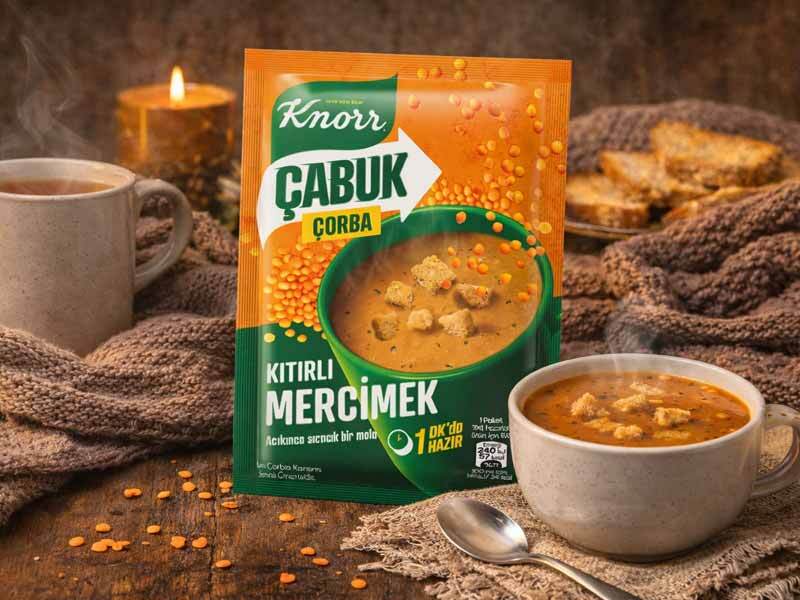 شوربة العدس السريعة من كنور سهلة التحضير بطعم غني ومناسبة لوجبة دافئة وسريعة في المنزل أو العمل أو أثناء التنقل.